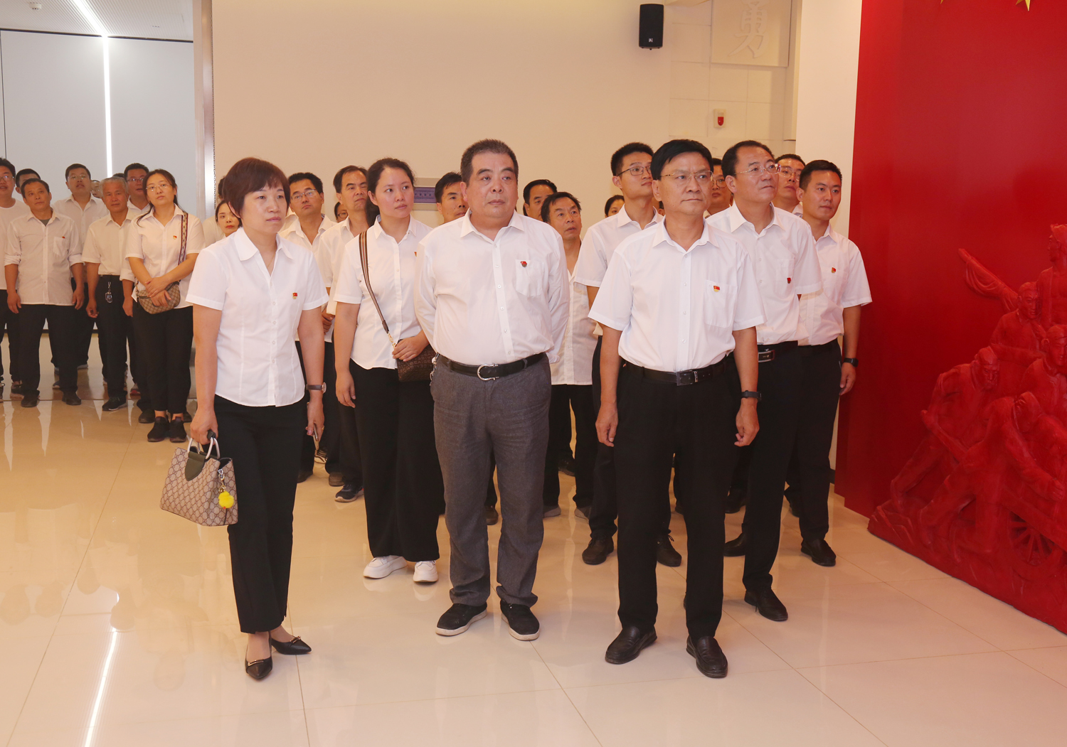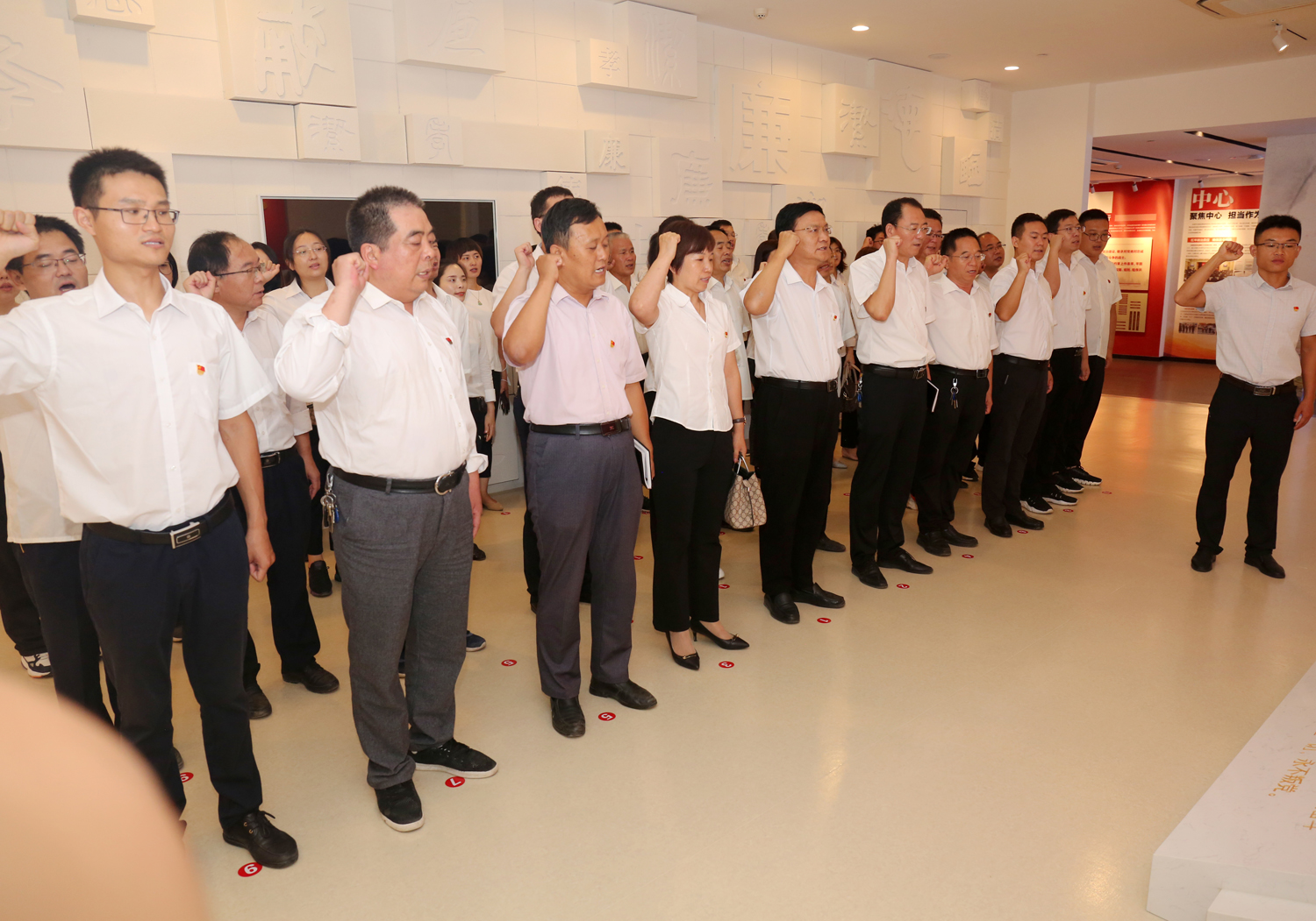 參觀結(jié)束后,全體黨員干部來到尾廳,面對鮮紅的黨旗莊嚴宣誓,用飽滿的熱情重溫了入黨初心。
