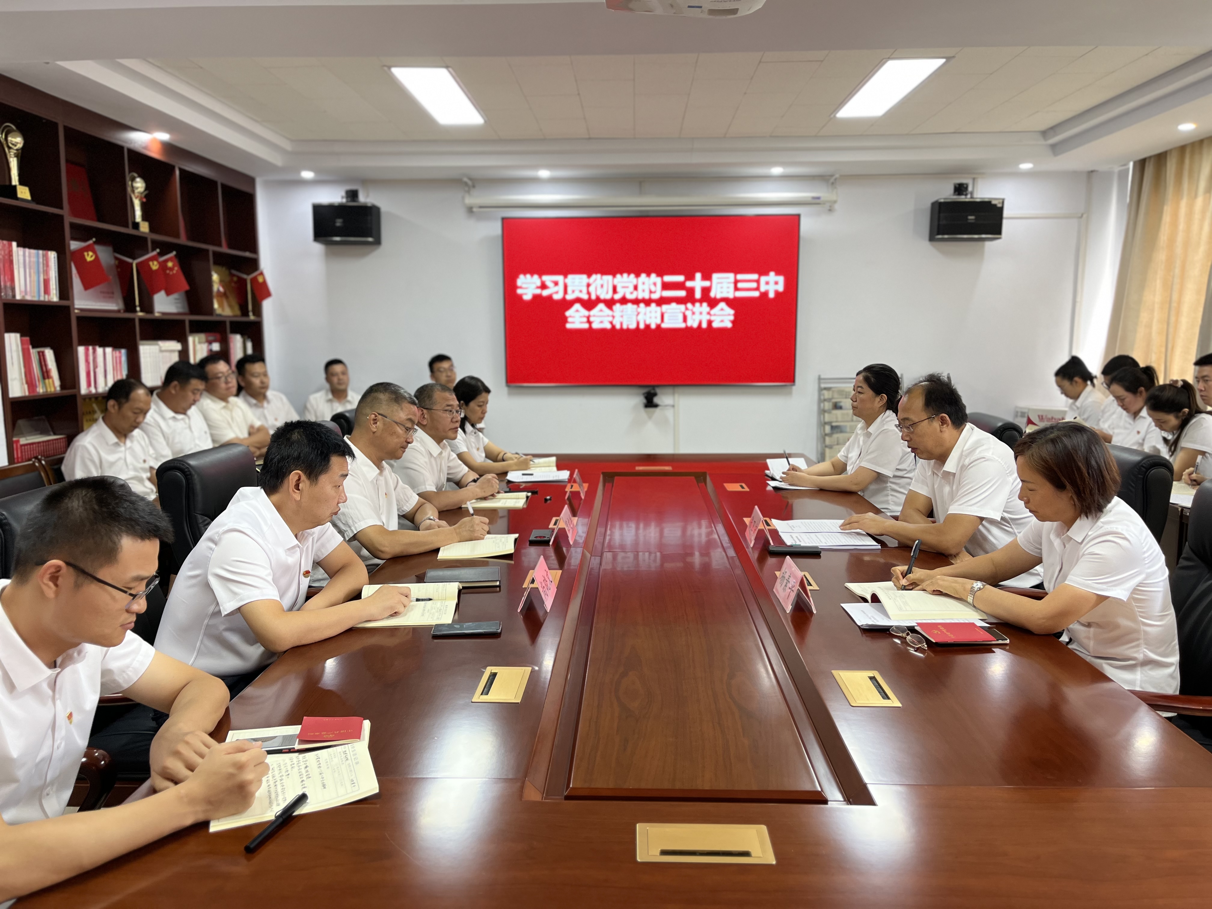根據(jù)上級(jí)黨委工作安排,市工信局(市國(guó)資委)黨組成員(黨委委員)、市紀(jì)委監(jiān)委派駐市工信局紀(jì)檢監(jiān)察組組長(zhǎng)張衛(wèi)宏到公司對(duì)機(jī)關(guān)全體黨員開展學(xué)習(xí)貫徹黨的二十屆三中全會(huì)精神宣講會(huì)。黨的二十屆三中全會(huì)對(duì)深化國(guó)資國(guó)企改革進(jìn)一步作出重大部署,張組長(zhǎng)以此為切入點(diǎn)對(duì)全會(huì)精神的核心要義和精神實(shí)質(zhì)進(jìn)行了深入淺出的宣講,對(duì)公司下一步發(fā)展提出七點(diǎn)建議,要求領(lǐng)導(dǎo)班子成員及全體黨員要以學(xué)習(xí)貫徹習(xí)近平總書記關(guān)于國(guó)有企業(yè)改革發(fā)展和黨的建設(shè)的重要論述精神為統(tǒng)領(lǐng),把好方向、守正創(chuàng)新,將學(xué)習(xí)貫徹落實(shí)二十屆三中全會(huì)精神與公司實(shí)際緊密結(jié)合,切實(shí)做到學(xué)思用貫通、知信行統(tǒng)一。