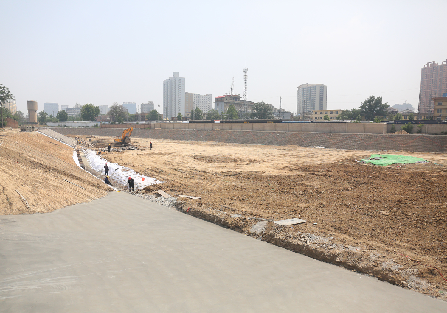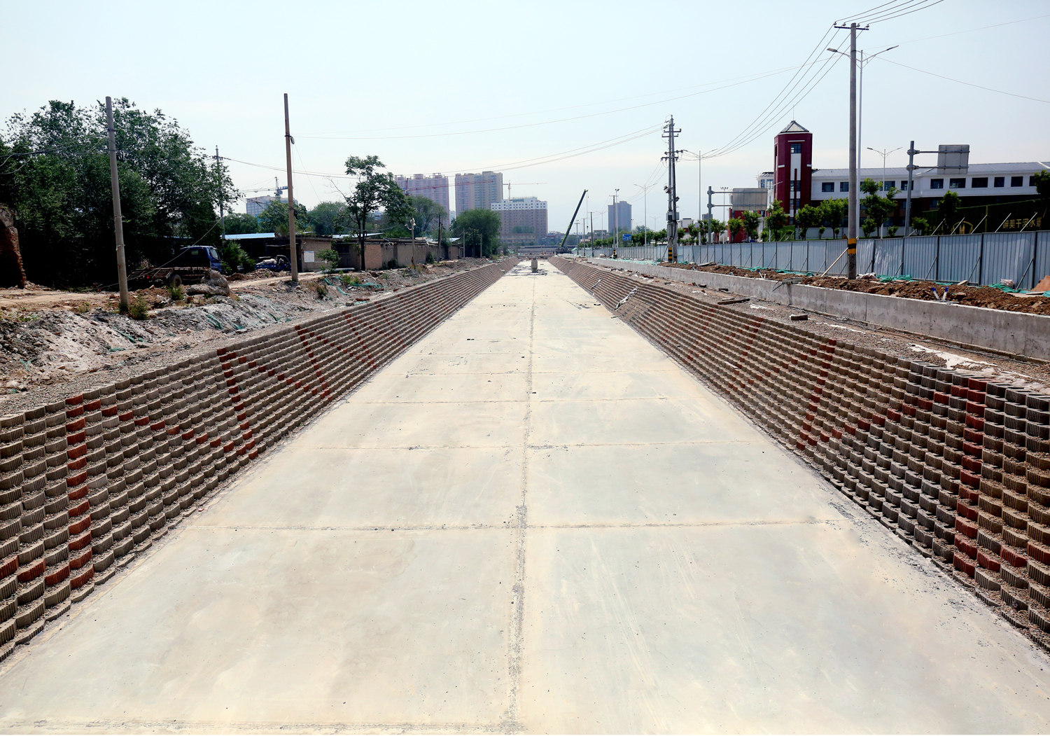 此次改造基于渠道原址,項目北起涑水街,南至火車站站北調節(jié)池西側提水泵站,全長4.26公里,批復主要建設內容為:1、明渠段治理2.06千米;2、暗涵段清淤1.84千米;3、站北調節(jié)池出口段治理0.362千米;4、東留調節(jié)池及站北調節(jié)池治理;5、綠化2.6萬平方米;6、埋設排污管道11.63千米;7、中水回用工程及生態(tài)補水工程等。