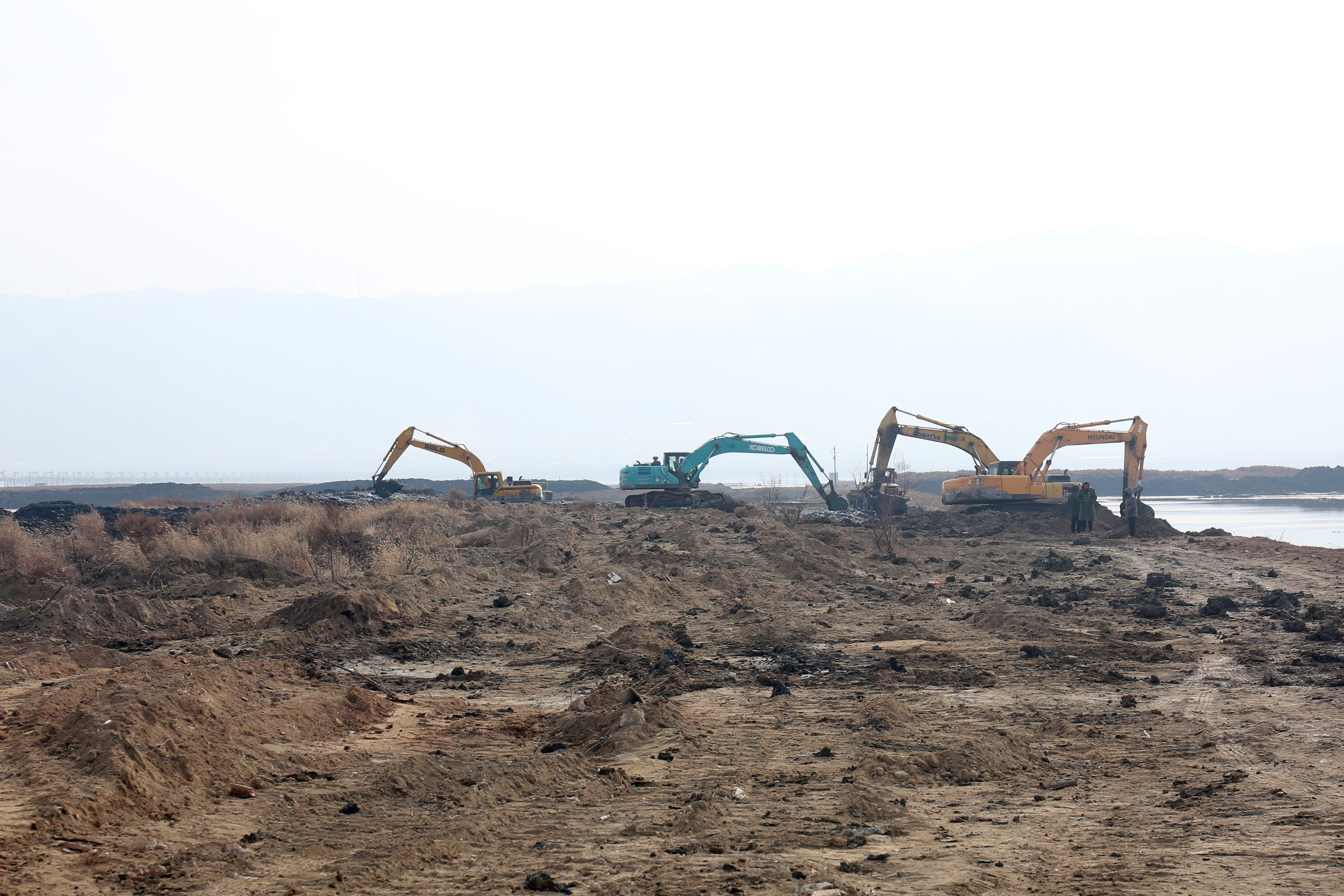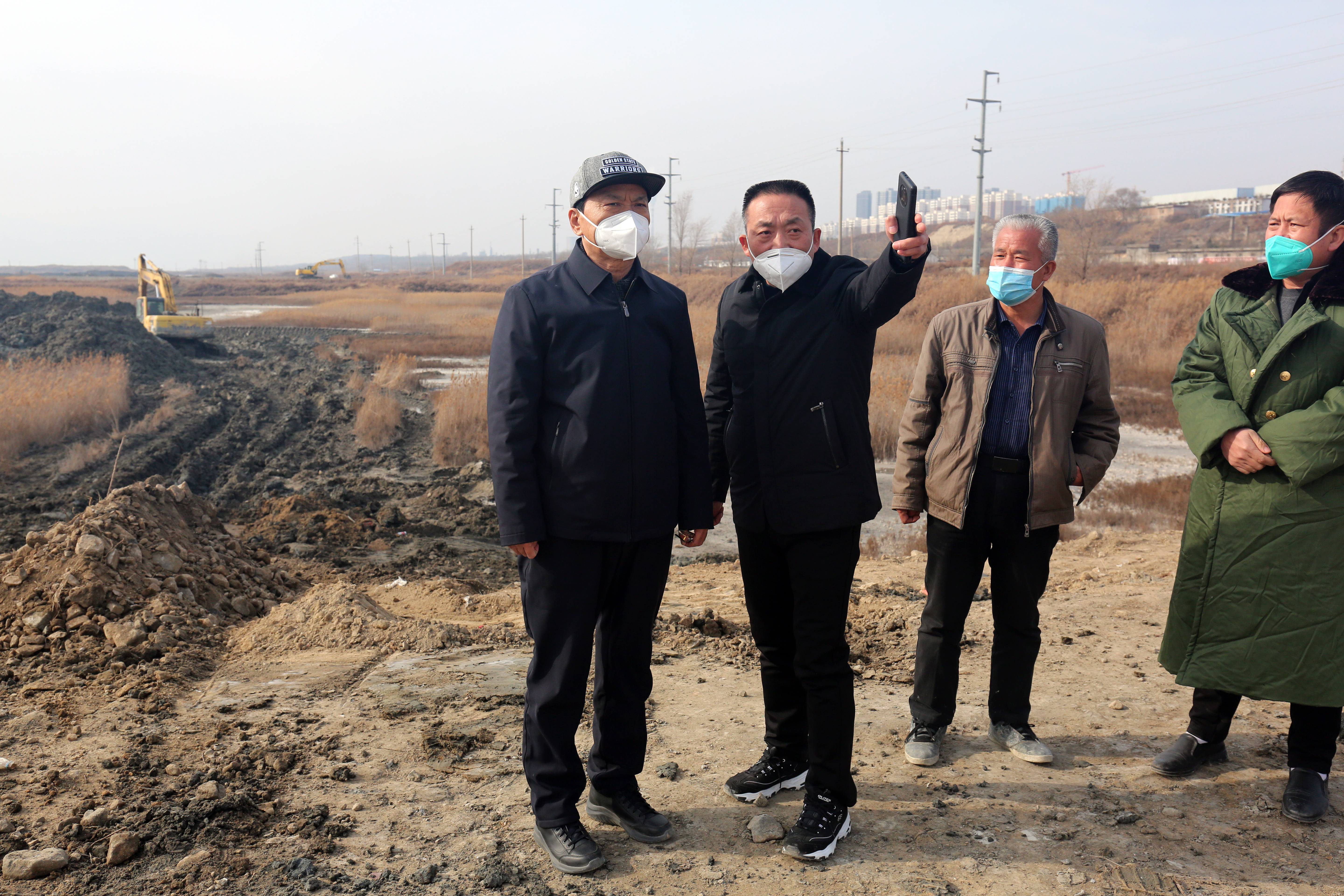 每到一處,詳細(xì)詢問施工人員康復(fù)情況、查看工地建設(shè)情況。干河清水復(fù)流段到處都是忙碌的工人,有安裝鋼壩閘的,有貼花崗巖的,有安裝欄桿的等;鹽湖生態(tài)治理工地上機(jī)械轟鳴,挖掘機(jī)、鏟車、挖泥船等20余臺大型機(jī)械有序運(yùn)作,施工人員搶抓工期,處處涌動(dòng)著建設(shè)熱潮。