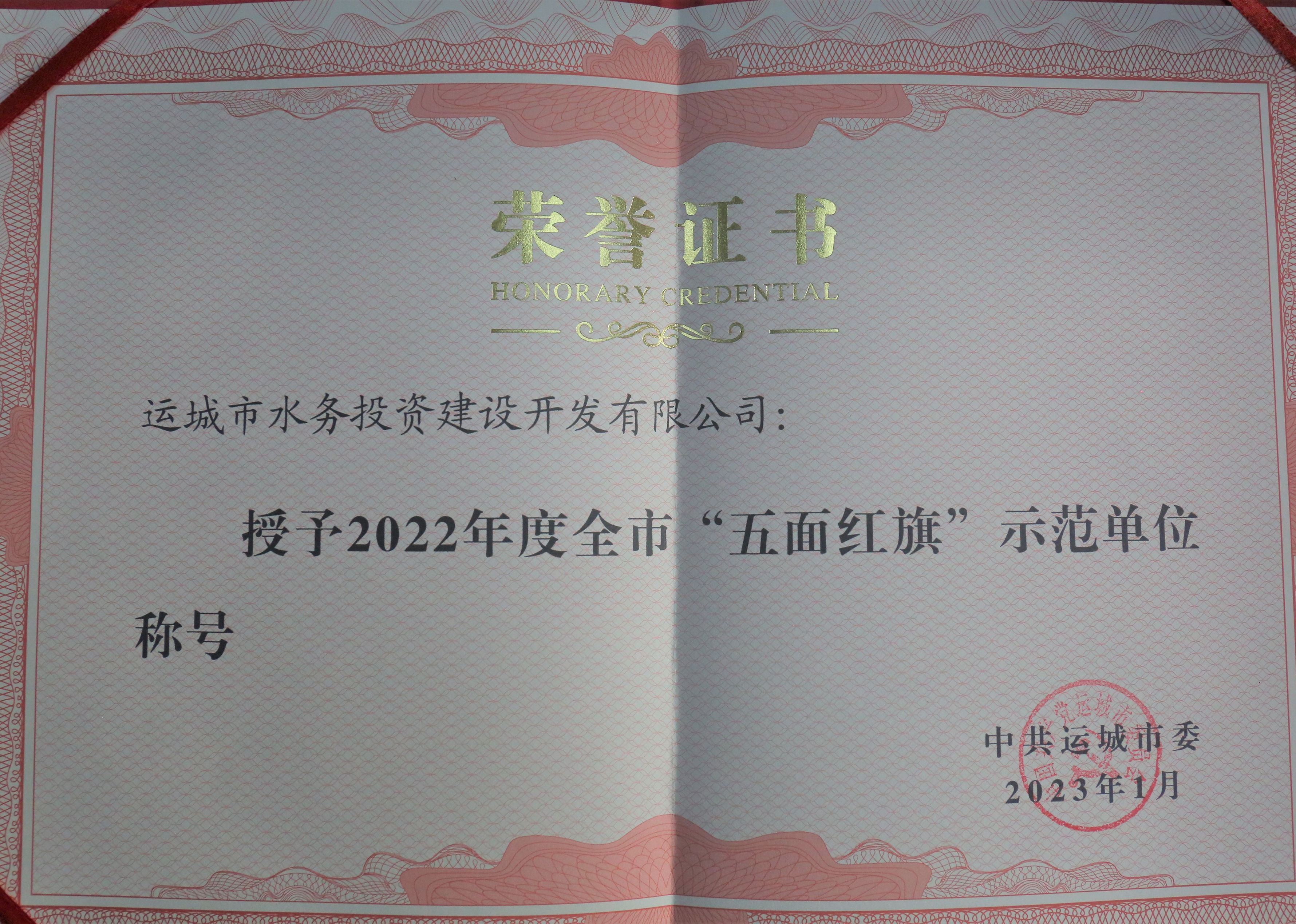近日,運(yùn)城市水投公司被中共運(yùn)城市委授予了2022年全市“五面紅旗”示范單位榮譽(yù)稱號。