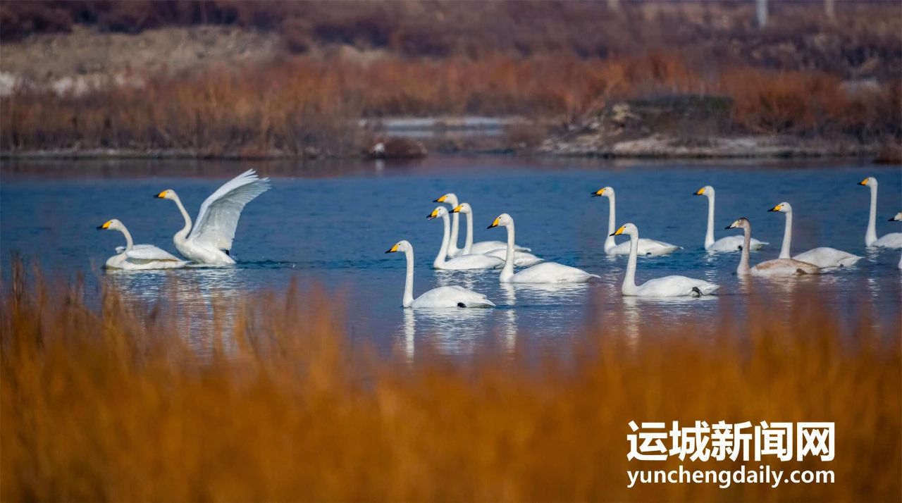 冬日時節(jié),近百只天鵝飛抵鹽湖濕地棲息越冬,它們時而嬉戲、時而飛翔,成為冬日鹽湖一道靚麗的風(fēng)景,吸引眾多游客前來觀賞。