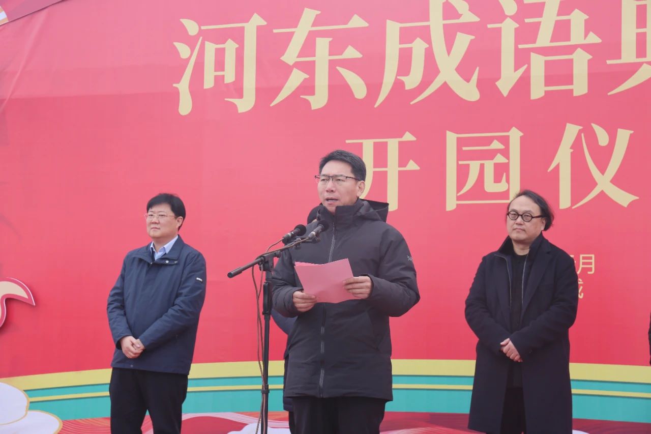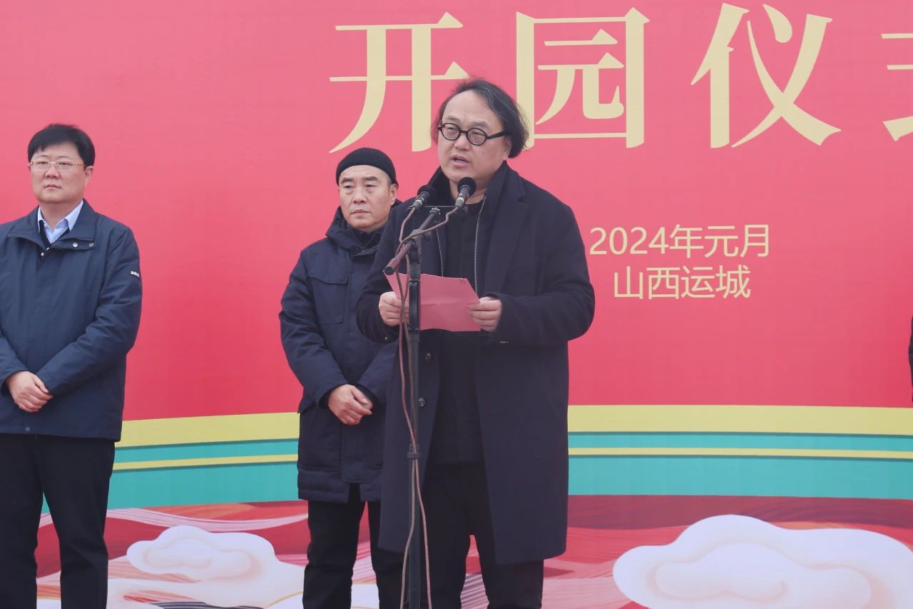 啟動(dòng)儀式由運(yùn)城市委宣傳部長王志峰主持,運(yùn)城市文化和旅游局黨組書記、局長陳小光同志介紹了河?xùn)|成語典故園策劃創(chuàng)意及實(shí)體達(dá)效情況;市水務(wù)投資建設(shè)開發(fā)有限公司黨委書記、董事長兼市鹽湖生態(tài)保護(hù)開發(fā)中心副主任崔作銘匯報(bào)了河?xùn)|成語典故園建設(shè)概況;中國美術(shù)學(xué)院院長、黨委副書記高世名同志做了致辭;最后中共運(yùn)城市委副書記、市人民政府市長儲(chǔ)祥好同志宣布河?xùn)|成語典故園開園,臺(tái)上領(lǐng)導(dǎo)和嘉賓共同推動(dòng)啟動(dòng)桿,百人齊聚,彩煙如虹當(dāng)空,裊裊綻放,共同見證了這一激動(dòng)人心的重要時(shí)刻。