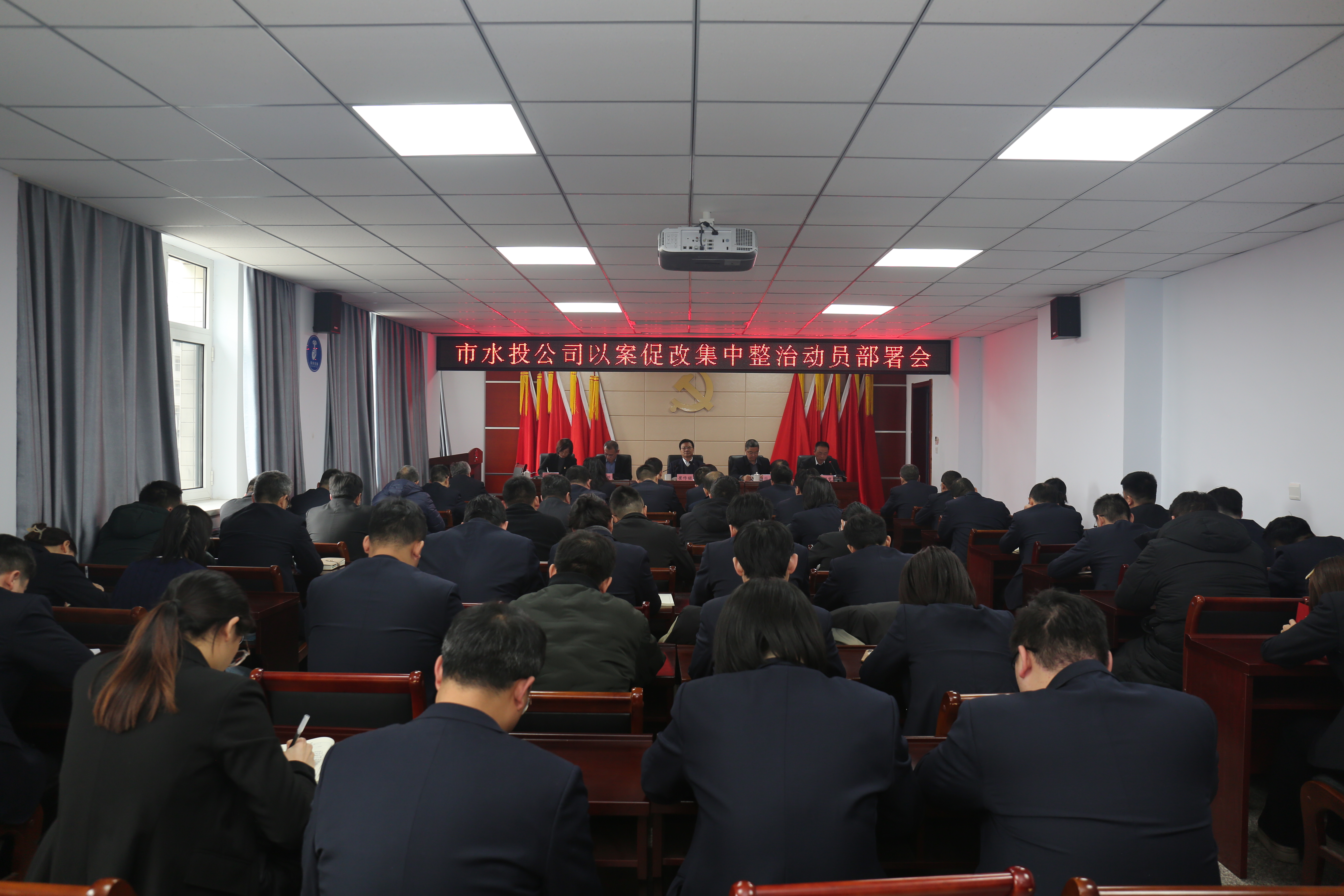 2月22日下午,市水投公司召開以案促改集中整治動(dòng)員部署會(huì)議,公司機(jī)關(guān)全體人員及各子公司班子成員參加會(huì)議,黨委副書記、總經(jīng)理薛文兵主持會(huì)議。