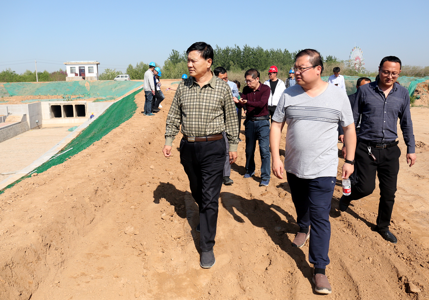 4月份以來,針對姚暹渠空港段項目施工中雨水浸泡、步道綠化、高壓電塔加固、污水管網(wǎng)重疊等問題,公司董事長崔作銘帶領(lǐng)公司相關(guān)人員多次深入施工現(xiàn)場,逐段實地查看,會同項目公司、設(shè)計單位、監(jiān)理單位、項目部,共商破解對策,提出破解辦法,有效保證了工程建設(shè)順利推進(jìn)。