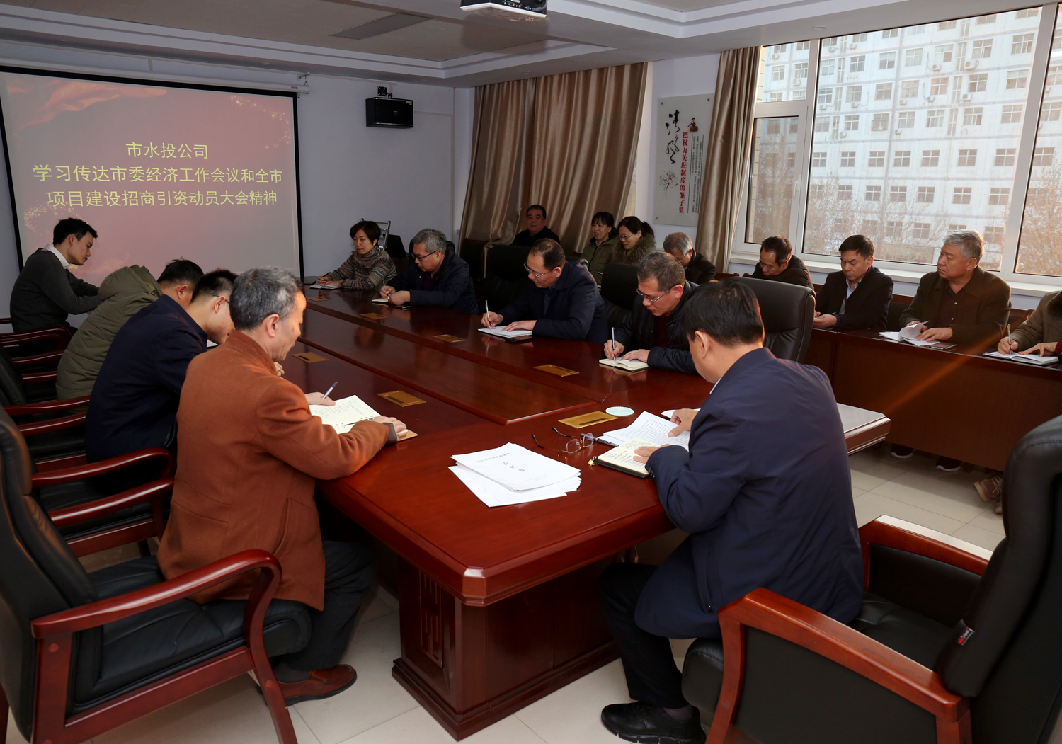 1月20日,我公司召開學(xué)習(xí)傳達(dá)市委經(jīng)濟(jì)工作會議精神和全市項目建設(shè)招商引資大會精神會議。公司班子成員、下屬單位班子成員和中層干部參會。