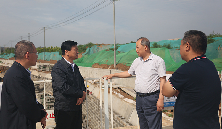 6月18日上午,市政府副市長(zhǎng)董旭光來我公司姚暹渠禹都段項(xiàng)目施工現(xiàn)場(chǎng)調(diào)研防汛度汛工作?,F(xiàn)場(chǎng)聽取了公司董事長(zhǎng)崔作銘關(guān)于項(xiàng)目建設(shè)情況和防汛工作安排的匯報(bào)。在詳細(xì)了解行洪流量、導(dǎo)流措施情況后,他提出要在保證安全的前提下,加快項(xiàng)目建設(shè)進(jìn)度,落實(shí)好各項(xiàng)防汛工作措施,主汛期前保證河道暢通,確保汛期順利行洪。