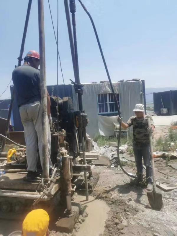 在施工現(xiàn)場(chǎng)上,鉆探工人們頭頂烈日,汗流浹背,正忙碌的進(jìn)行鉆探工作,他們不懼烈日,有條不紊地操作著每一道工序,確保施工質(zhì)量?jī)?yōu)良,施工探員張海瑞檢測(cè)了施工人員的安全帽,要求大家保證施工安全。